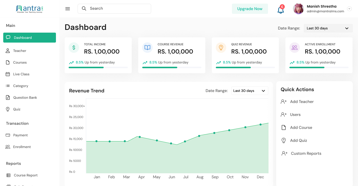 Our CMS Portal allows administrators to create, update, and organize course content efficiently. Manage user roles, track content performance, and ensure a seamless learning experience.